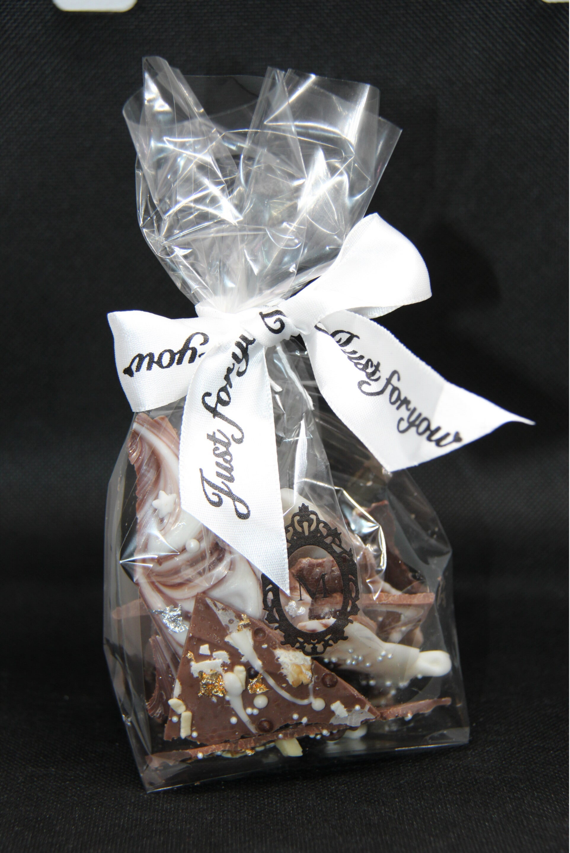 Feinste hauchdünne handgefertigte Bruchschokoladen Stückchen aus Schweizer Schoggi, knackig und leicht mit einer schöner Farbkombination aus Marmor und hübschen Verzierungen für ein Sinnlicher Genuss.
