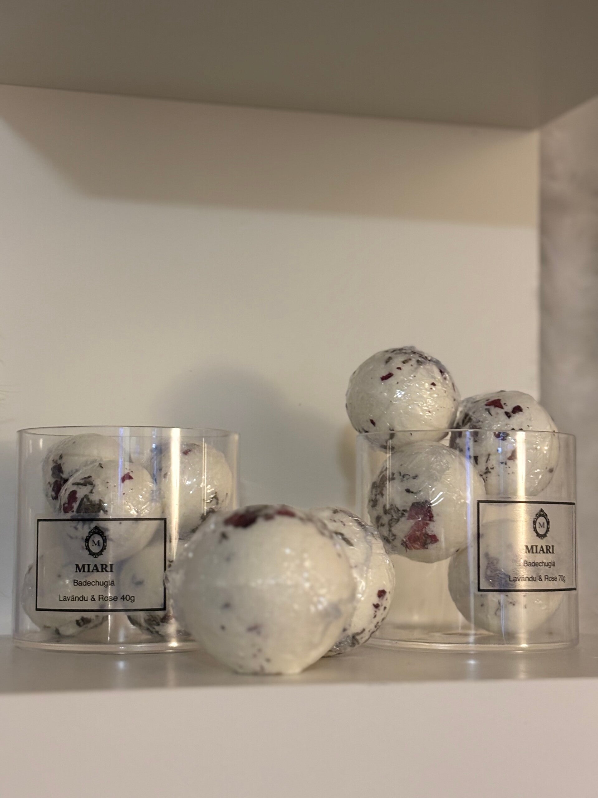 Handgemachte Badekugel mit frischem Lavendel und Rosenblätter. Für ein entspannendes, und duftendes Badeerlebnis.